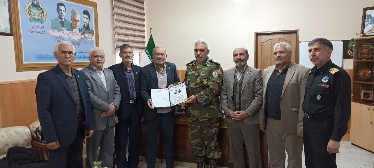 رئیس گروه هیئت معارف جنگ شهید «سپهبد علی صیاد شیرازی » منطقه جنوب شرق کشور به همراه اساتید پیشکسوت این گروه در روز سه شنبه دوم دی ماه ۱۴۰۴ با حضور در قرارگاه منطقه ای نزاجا در جنوب شرق کشور لوح تبریک انتصاب امیر سرتیپ دوم ستاد عباس ملکی زاده و امیر سرتیپ دوم ستاد محمدرضا نژاد سروری را که به ترتیب در سمت های فرمانده و جانشین قرارگاه جنوب شرق منصوب گردیده اند را با امضای امیر سرتیپ ناصر آراسته جانشین رئیس گروه مشاورین نظامی فرماندهی معظم کل قوا و ریاست هیئت معارف جنگ «شهید سپهبد علی صیاد شیرازی» به ایشان اهدا نمودند.
